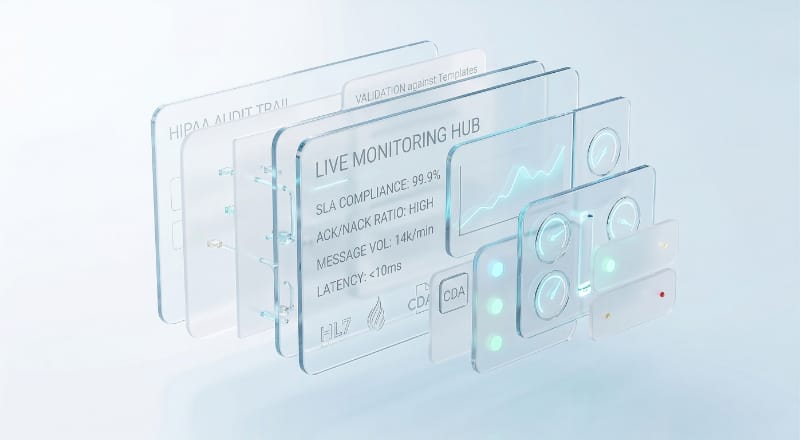 • Complete HIPAA audit trail with full message traceability across all managed interfaces